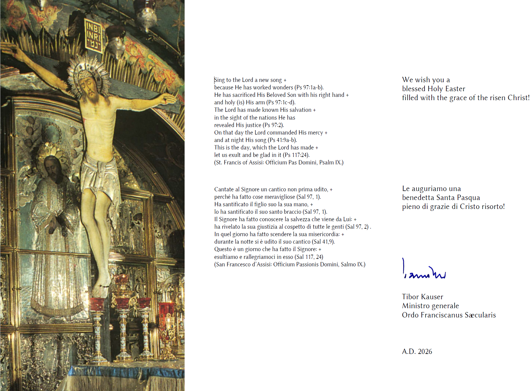 Aktuality NovinkyVelikonoční přání generálního ministra Velikonoční přání generálního ministra Přejeme vám požehnané Velikonoce naplněné milostí vzkříšeného Krista!