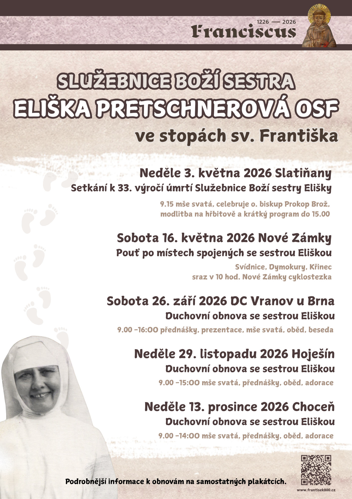 Aktuality PozvánkySlužebnice Boží sestra Eliška Pretschnerová OSF ve stopách sv. Františka Služebnice Boží sestra Eliška Pretschnerová OSF ve stopách sv. Františka